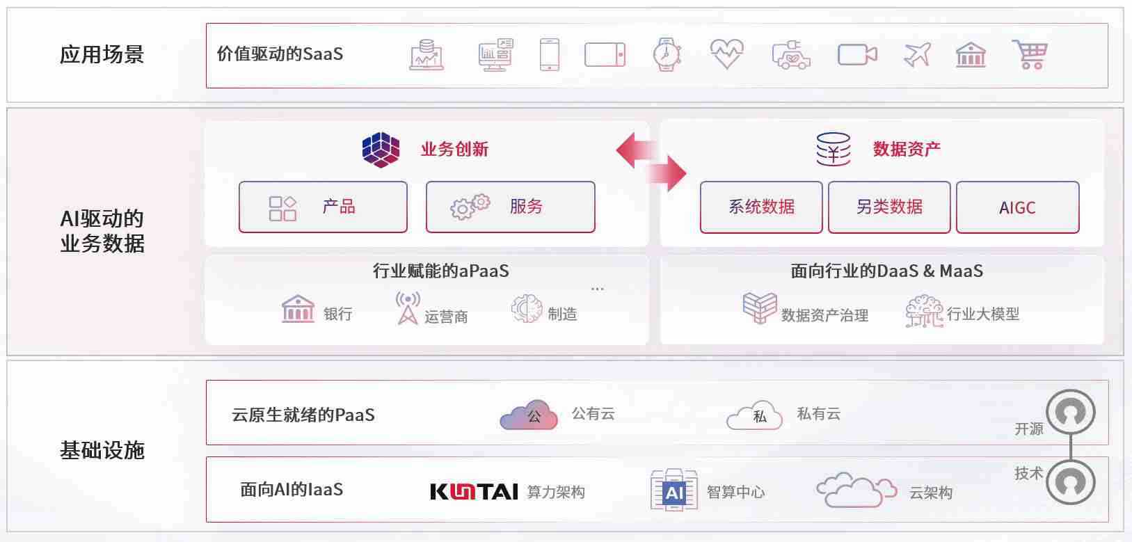 数字时代,,围绕企业数字化转型的关键要素,,z6com尊龙数码开创性的提出数云融合战略和技术体系框架,,着力在云原生、、、数字原生、、、、AI原生和信创产业上架构产品和服务能力,,,为处在不同数字化转型阶段的快消零售、、汽车、、、金融、、、、医疗、、、、政企、、、、教育、、、、运营商等行业客户提供泛在的敏捷IT能力和融合的数据驱动能力,,,构建跨界融合创新的数字业务场景和新业务模式,,,,助力企业级客户建立面向未来的核心能力和竞争优势,,,全面推动社会的数字化、、智能化转型升级。。。。